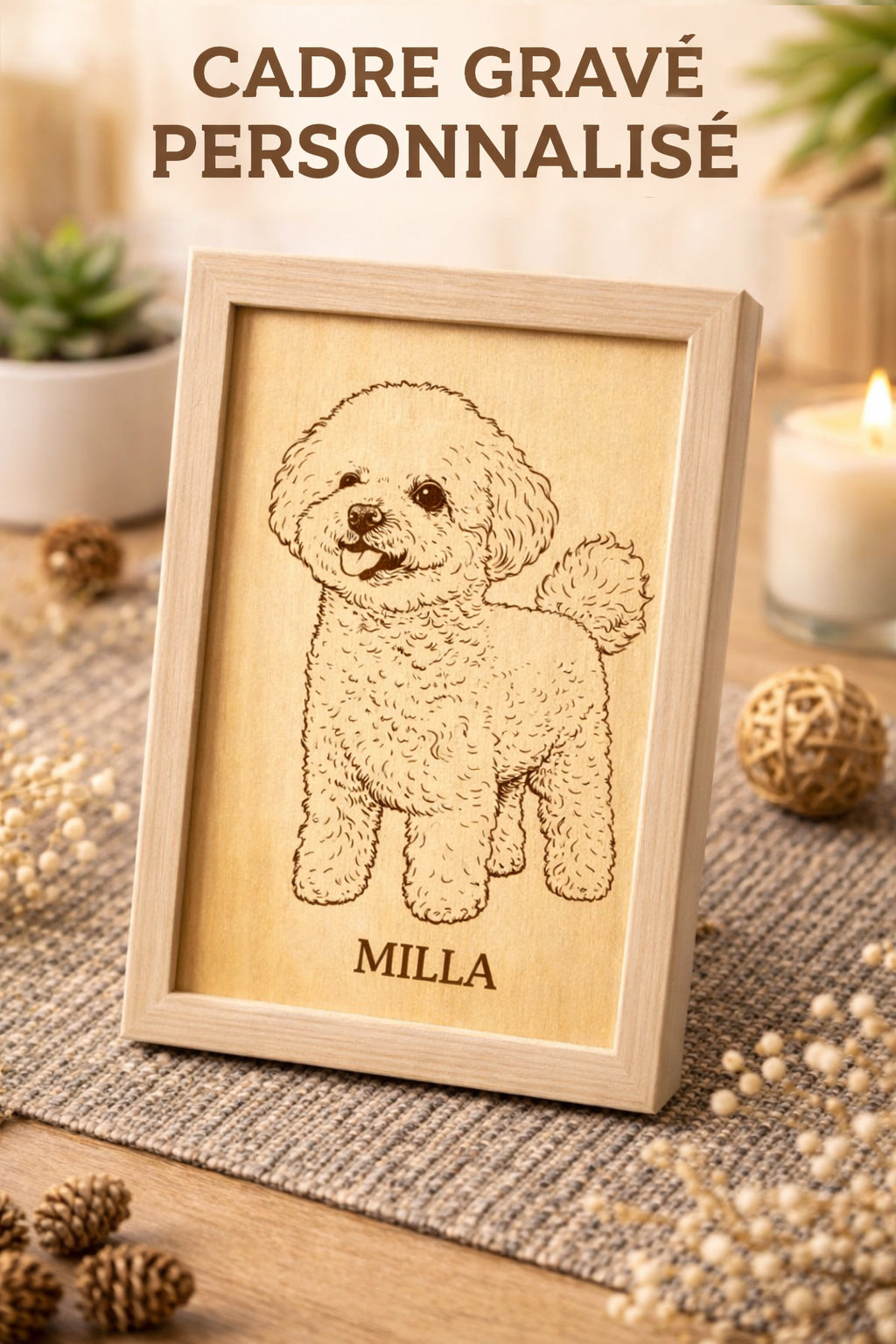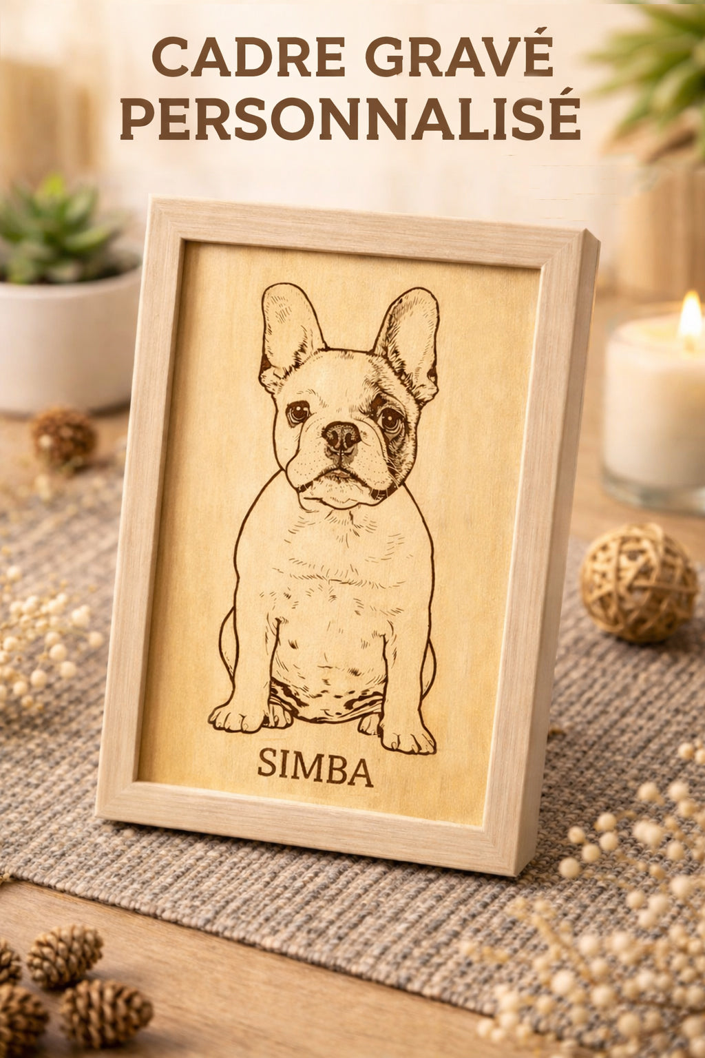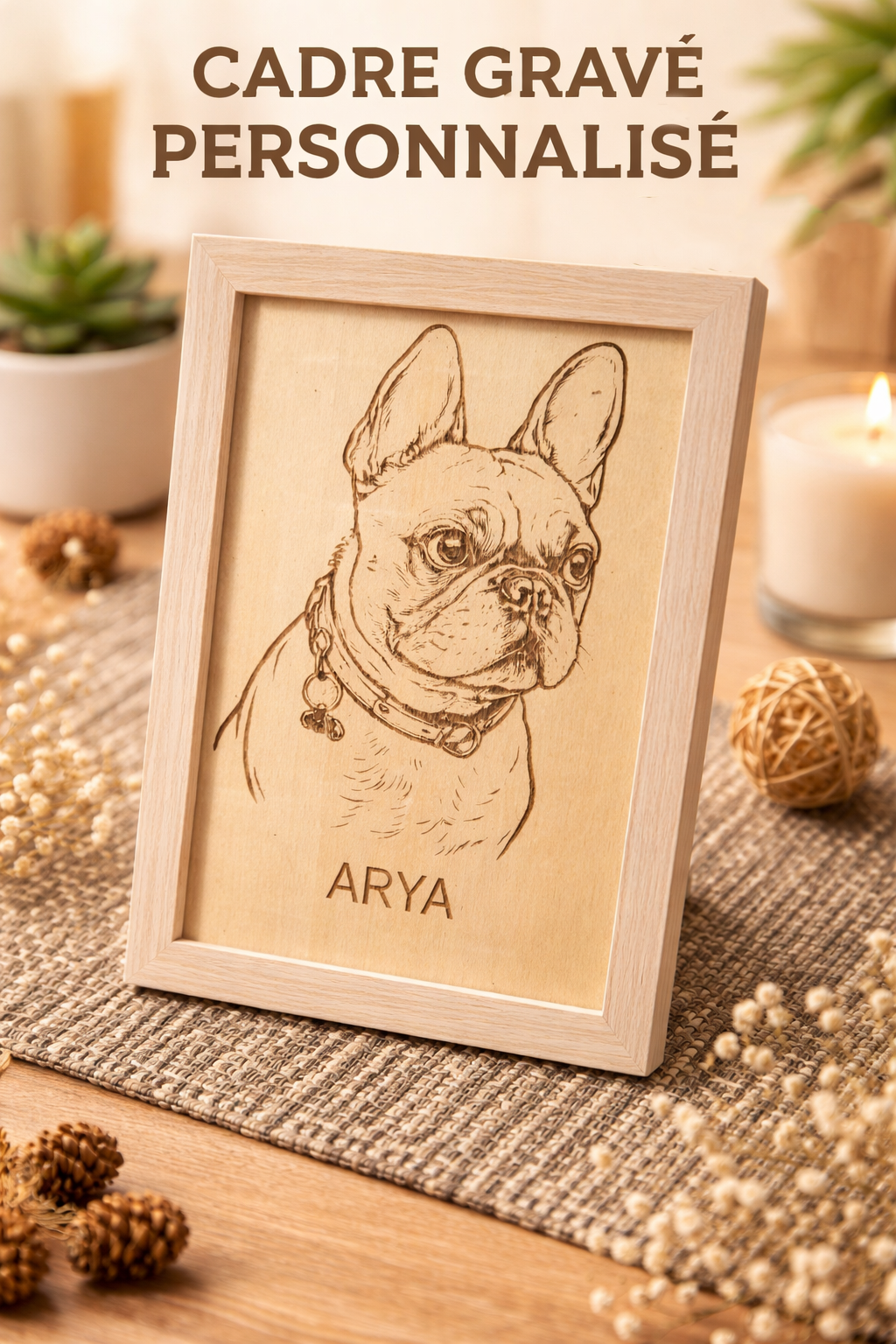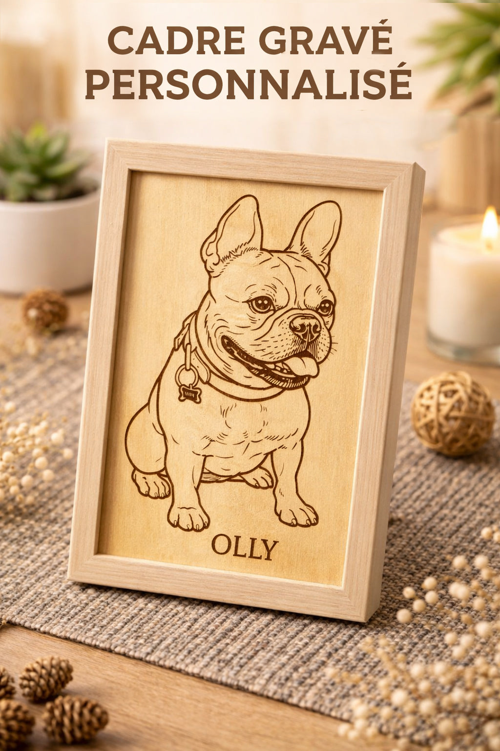 Cadre gravé personnalisé sur bois